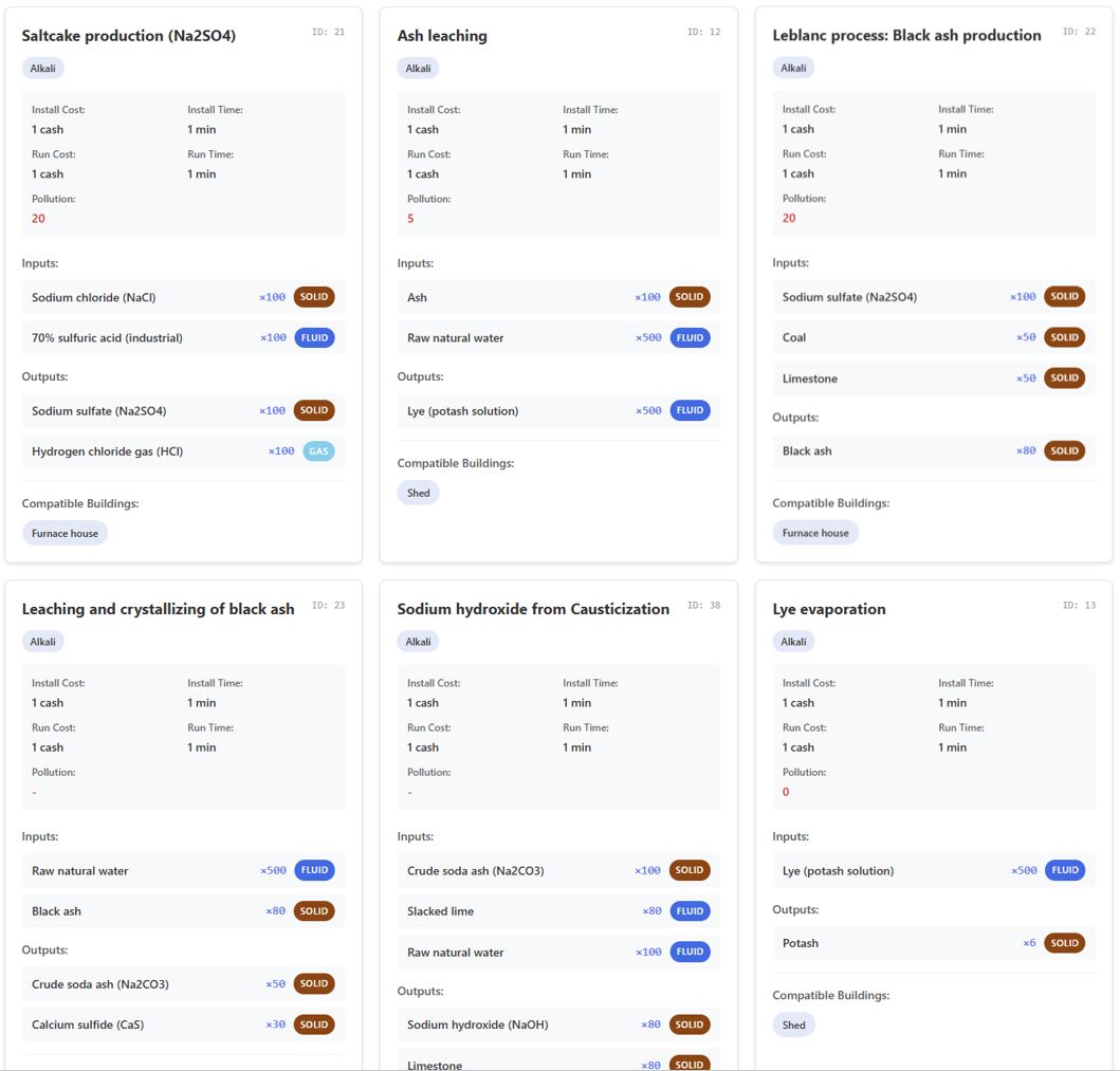 - Ingame encyclopedia: browse all processes currently implemented.